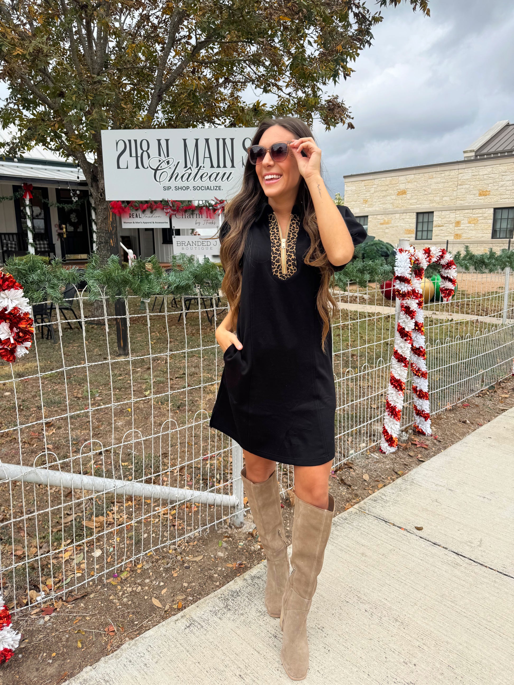 An Elegant black midi dress blends classic sophistication with a playful twist.