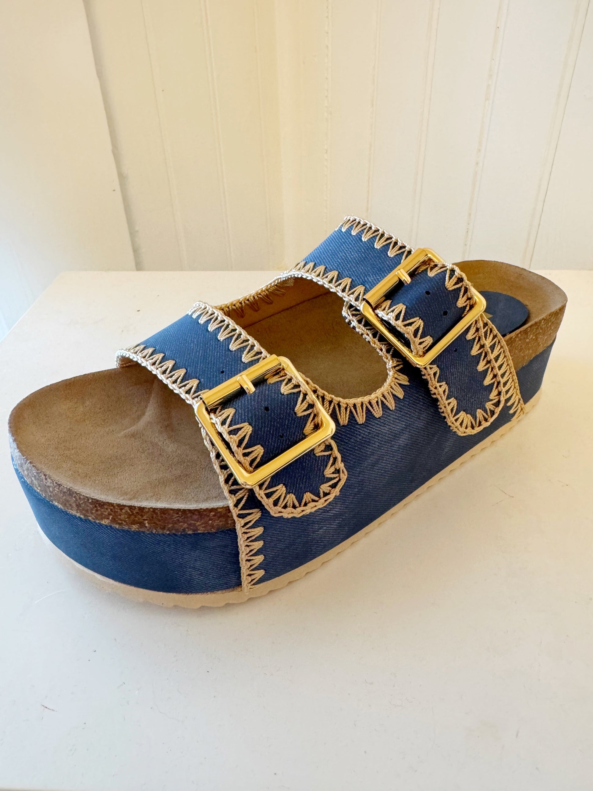 Step into ultimate comfort and style with our Mia Bowie Denim Sandals. Perfect for casual outings and strolls, these sandals are designed to offer maximum support while keeping your feet cool and chic.
